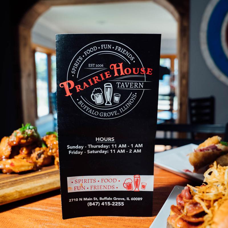As soon as you step into Prairie House Tavern, you know you’re somewhere special. With our cozy bar, airy patio, and smiling staff, it's never long before our first-timers turn into regulars. Our menu’s packed with all of your all-American favorites, and from our pizzas right down to our salad dressings, everything’s made fresh in-house. Next time you’re looking to kick back with friends, sip a cold beer and enjoy a hearty burger, look no further than Prairie House -- after all, we're where the locals go to eat, drink, and relax.